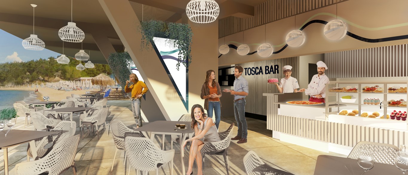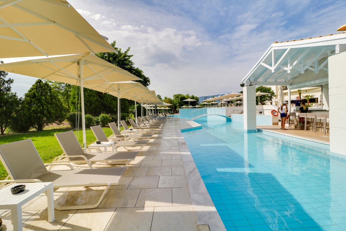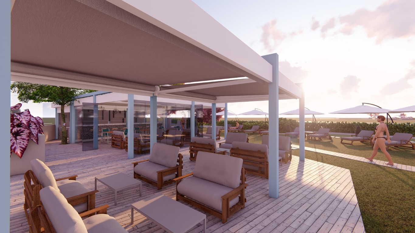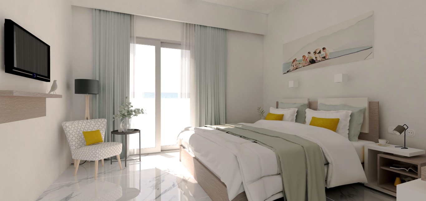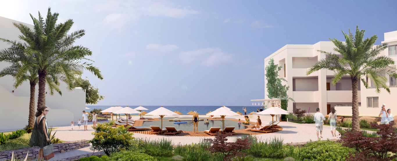 Разработка и реализация дизайн проекта номеров, дизайн мебели, участие в ландшафтном дизайне, разработка pool-бара, строительство летнего ресторана «Anemos», строительство детской площадки, а также меблировка общественных зон и баров. Командой специалистов Grekodom был проведен надзор за всеми работами по данному проекту.