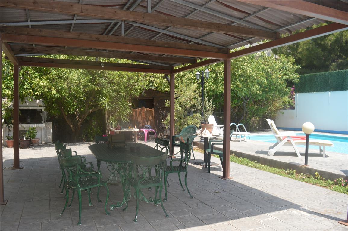 Продается 3-этажная вилла площадью 600 кв.м в Афинах. Цокольный этаж состоит из 2 спальных комнат, гостиной, 2 ванных комнат. Первый этаж состоит из 3 спальных комнат, гостиной с кухней, гостиной, 2 ванных комнат, одного санузла. Второй этаж состоит из 3 спальных комнат, гостиной с кухней, гостиной, 2 ванных комнат, одного санузла. Из окон открывается вид на море. У объекта есть солнечные батареи для нагрева воды, камин, кондиционер, тенты, зона барбекю, отопление. Недвижимость продается с мебелью. У объекта установлена сигнализация. К недвижимости относится парковочное место, сад. На территории расположен бассейн личного пользования.