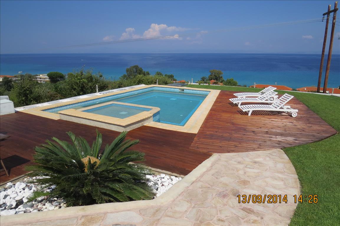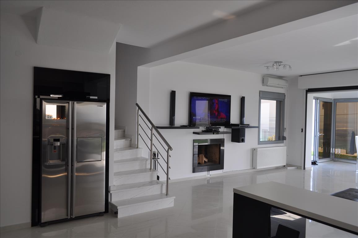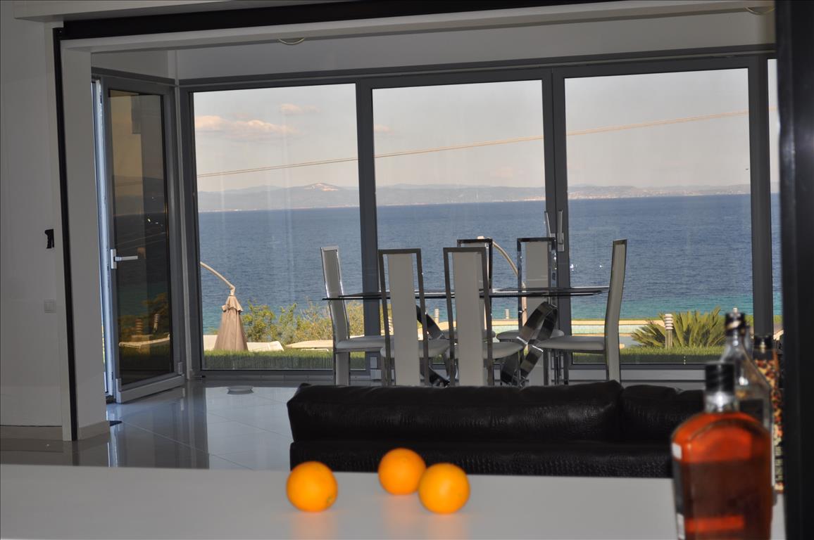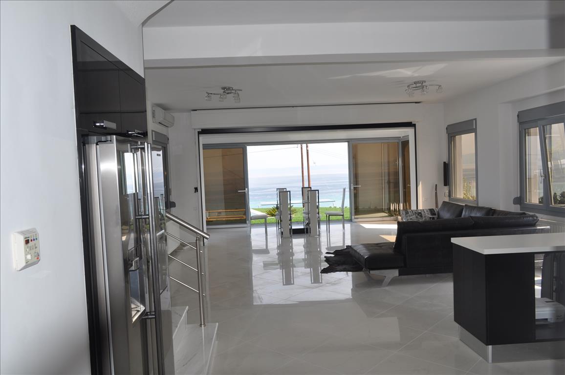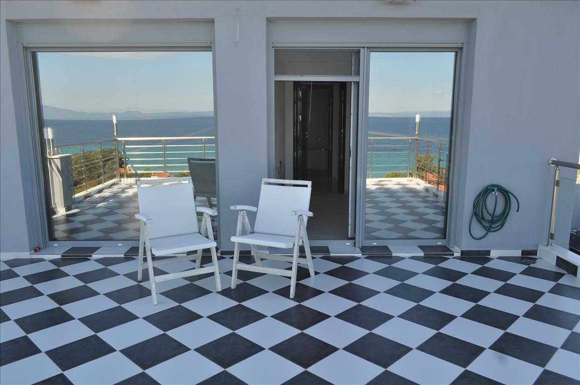 Поселок, в котором расположена вилла, является популярным курортным местечком с многокилометровым пляжем и развитой инфрастуктурой. Дом полностью меблирован в красивом минималистическом стиле, оснащен бытовой техникой(телевизоры в 3-ех комнатах, кухонная мебель с бытовой техникой фирмы BOSCH, 2 больших холодильника, посудомоечная и стиральная машина, спутниковое телевидение и т.д.). К дому прилегает большой участок площадью 900 кв.м, покрытый зеленым газоном, который поливается автоматически. Территория участка освещается. Имеется открытая стоянка для машины на 3 места. Расстояние от моря 800 м, а от аэропорта г. Салоники 85 км.