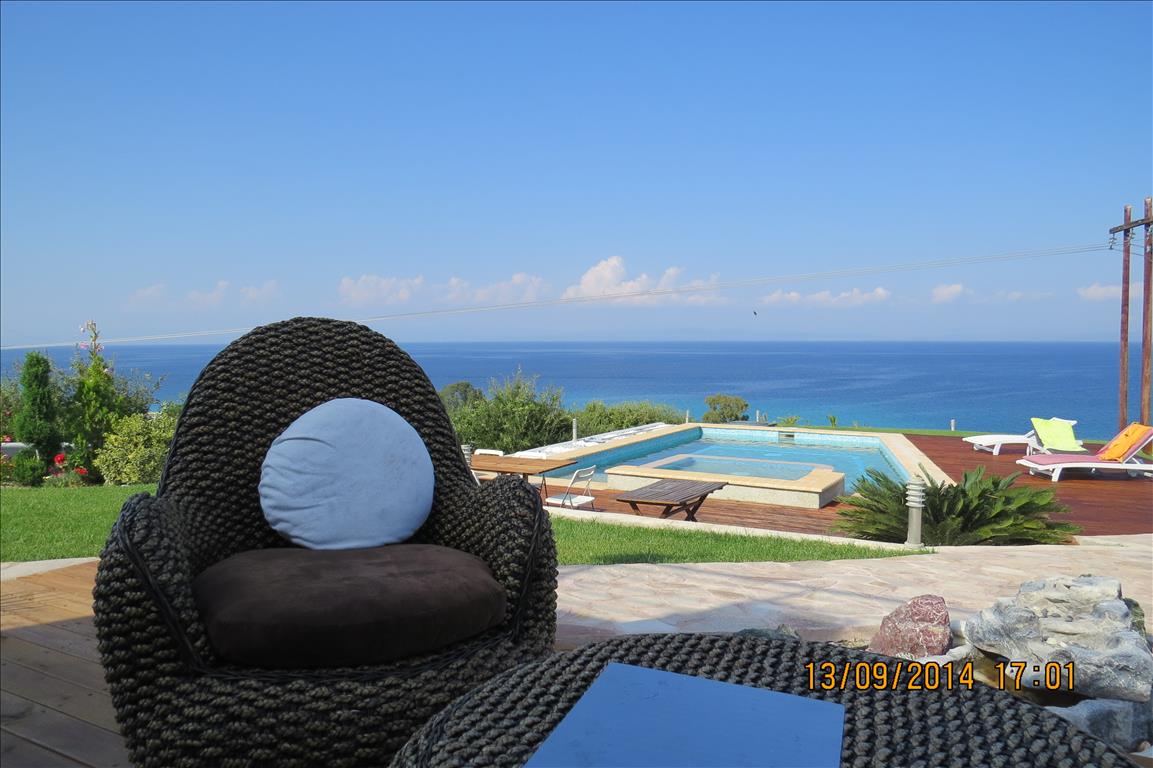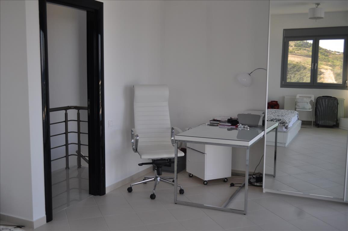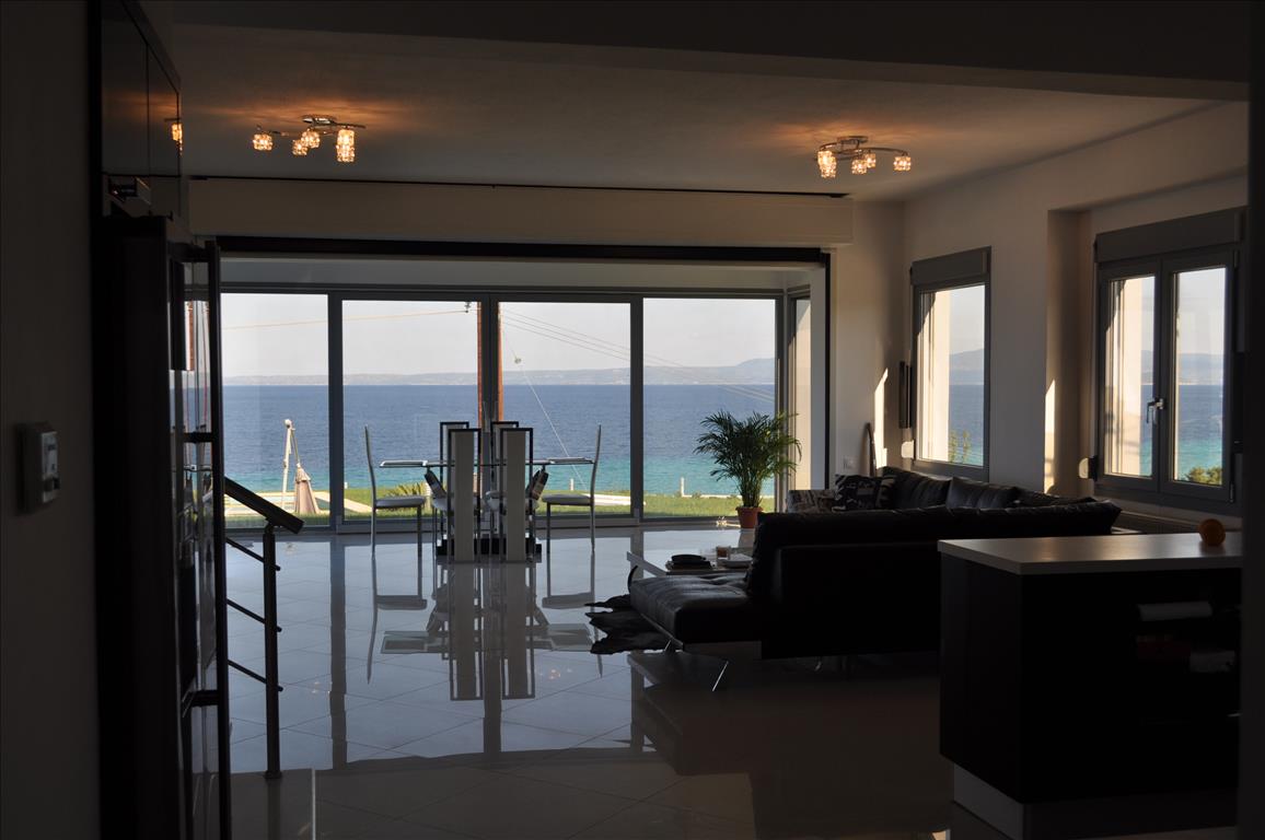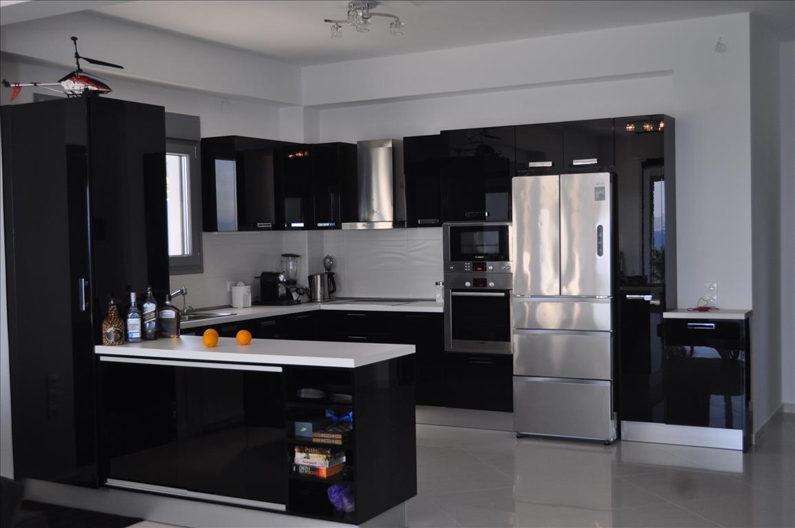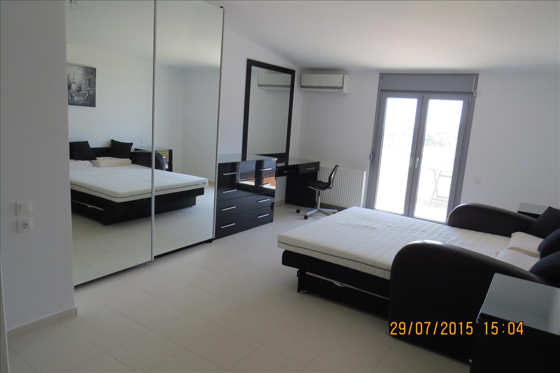 Поселок, в котором расположена вилла, является популярным курортным местечком с многокилометровым пляжем и развитой инфрастуктурой. Дом полностью меблирован в красивом минималистическом стиле, оснащен бытовой техникой(телевизоры в 3-ех комнатах, кухонная мебель с бытовой техникой фирмы BOSCH, 2 больших холодильника, посудомоечная и стиральная машина, спутниковое телевидение и т.д.). К дому прилегает большой участок площадью 900 кв.м, покрытый зеленым газоном, который поливается автоматически. Территория участка освещается. Имеется открытая стоянка для машины на 3 места. Расстояние от моря 800 м, а от аэропорта г. Салоники 85 км.