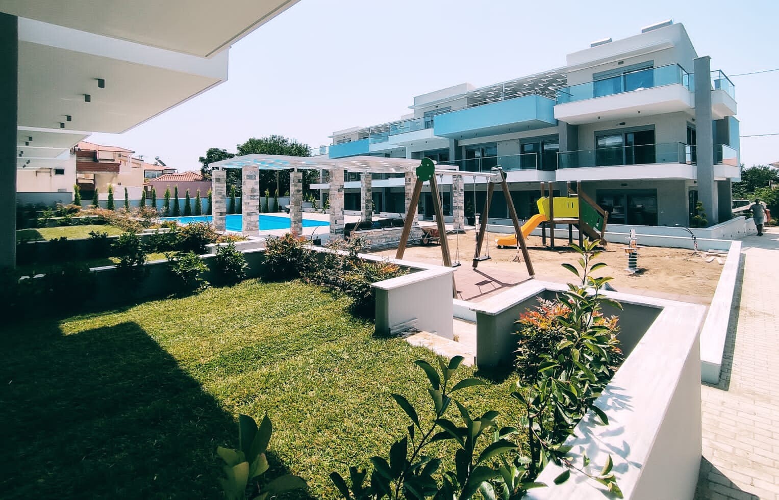 Проект, расположенный в популярном туристическом поселке, в Никити, на п-ове Ситония, Халкидики, состоит из трех отдельных корпусов и предлагает 38 апартаментов различной площади и планировки. На единой территории комплекса Bomo Nikiti Apartments расположены: детская игровая площадка, бассейн и зона отдыха. В апартаментах интерьер выполнен в светлых спокойных тонах, планировка эргономична и полностью соответствует высоким стандартам. При строительстве и отделке квартир используются материалы высокого европейского качества.