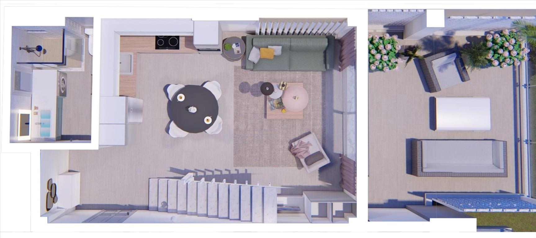 Продается дуплекс площадью 60 кв.м на полуострове Ситония, региона Халкидики. Дуплекс расположен на 2 уровнях. Второй этаж состоит из гостиной с кухней, одной душевой комнаты. Третий этаж состоит из одной спальной комнаты. Из окон открывается вид на город. У объекта есть солнечные батареи для нагрева воды, кондиционер. Недвижимость продается с мебелью. В здании нет лифта. В распоряжении владельцев общий бассейн на территории.