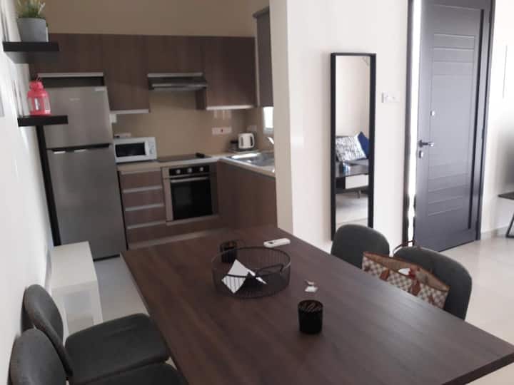 Уютная квартира расположена на нижнем этаже рядом с бассейном. Дизайнерский ремонт, новая мебель, спутниковое телевидение, смарт ТВ, бесплатный WiFi.