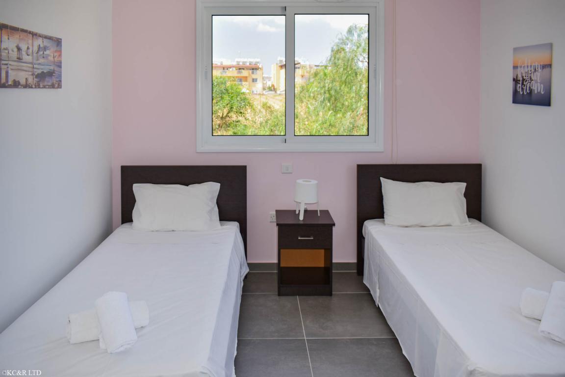 Продается квартира площадью 80 кв.м В Протарасе. Квартира расположена на третьем этаже и состоит из 2 спальных комнат, гостиной с кухней, одной ванной комнаты.