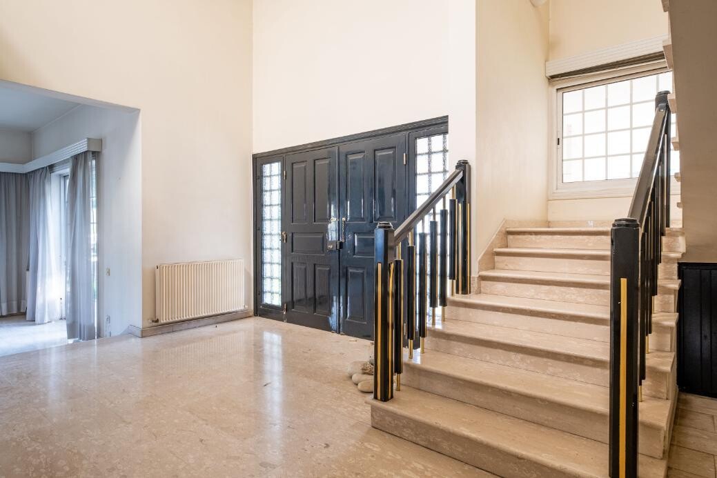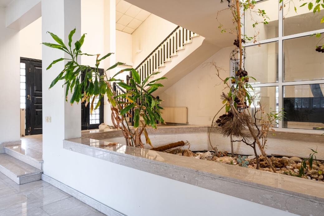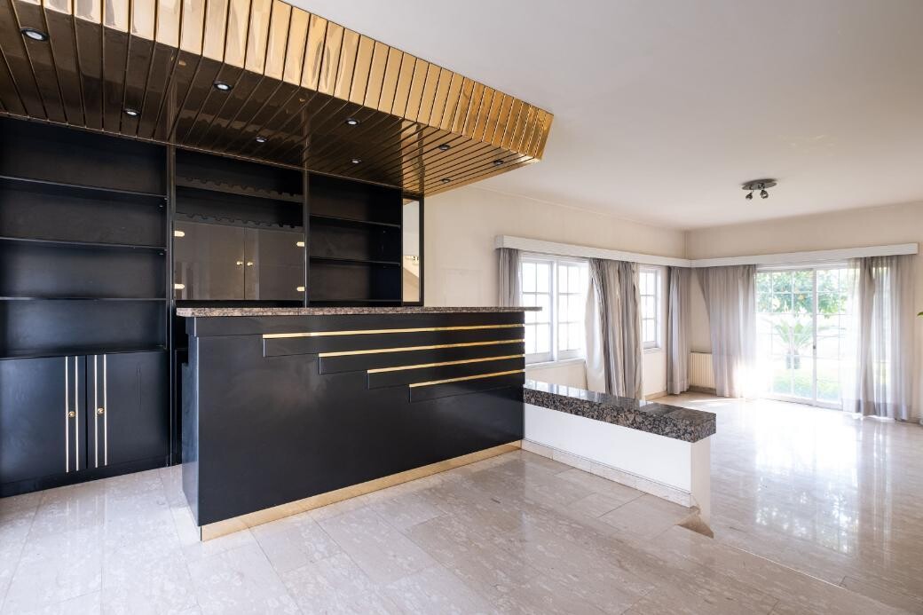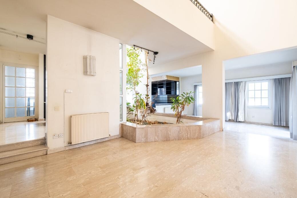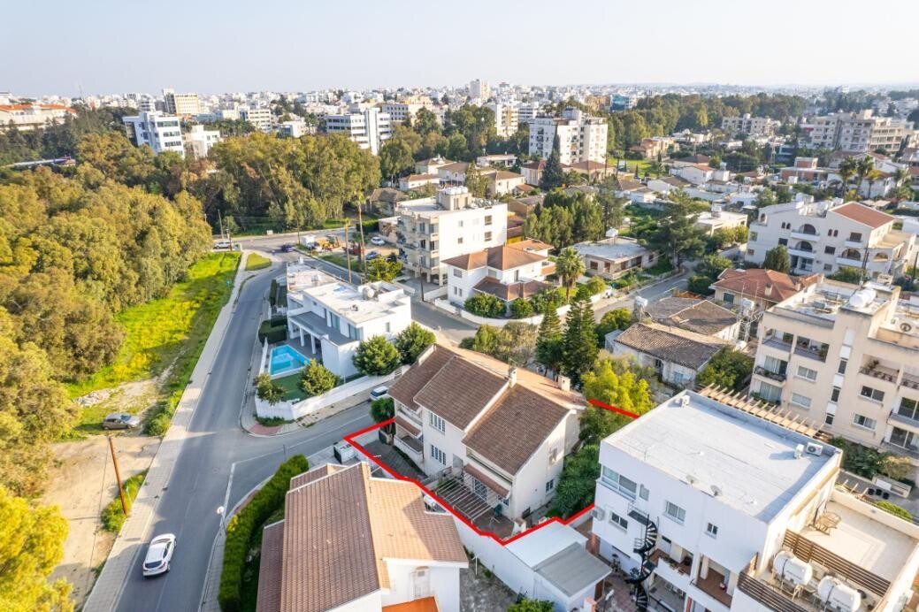 4 bedroom house in Chryseleousa, Strovolos. The property is a 4 bedroom house in Chryseleousa quarter, Strovolos. It is located 150m from the Presidential Palace area and 200m from Strovolou avenue. The house has a covered area of 350sqm, a basement of 90sqm and 30sqm of covered verandas. The ground floor consists of an entrance hall, living room with fireplace, dining room, kitchen, storage room, laundry room, office, internal garden and covered verandas. The first floor consists of four bedrooms and two bathrooms. There is also an attic which consists of an open-plan space. The basement consists of covered parking space, boiler room and water tanker room. Moreover, there is a sauna and jacuzzi area. The property is built within a corner plot with an area of 553sqm and benefits from 47m road frontage. It offers proximity to schools, shopping malls, parks, Universities, hospitals, and all amenities.