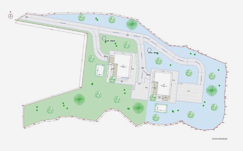 Сам участок состоит из твёрдой каменистой почвы с ровными участками, что облегчает строительство. Он имеет готовое разрешение на строительство двух вилл одинакового стиля, что позволяет сразу планировать и начинать строительство.