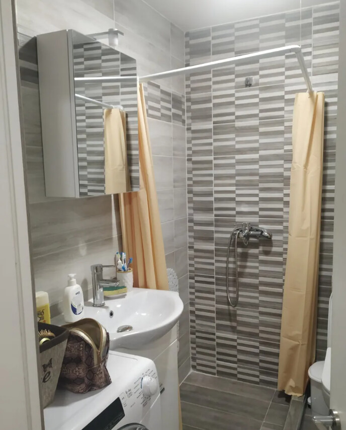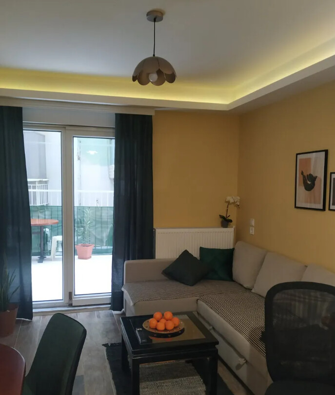 Сдаётся квартира площадью 58 кв.м в Салониках. Квартира расположена на первом этаже и состоит из одной спальной комнаты, гостиной с кухней, одной душевой комнаты.